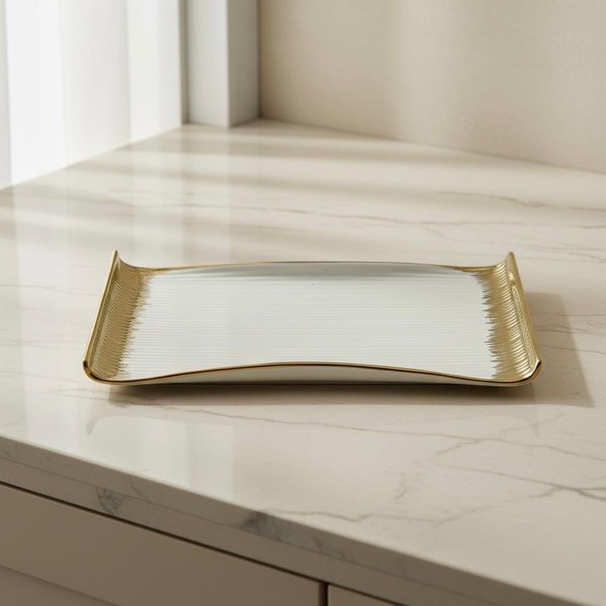 12"x6.25" PLATE W/GOLD DESIGN-RECTANGLE