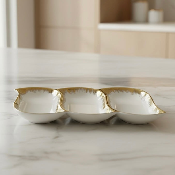 15"X6.5" - 3 SECTION PORCELAIN DISH-GOLD