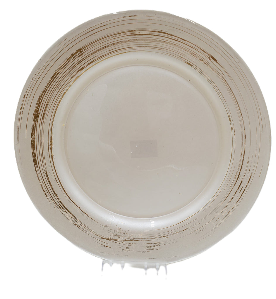 10.5"GLASS PLATE-PEARL WHI/GOLD