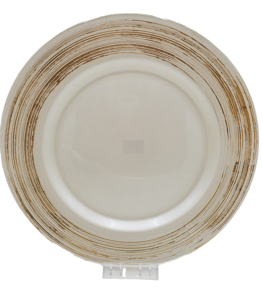 13" GLASS PLATE-PEARL WHITE/GOLD