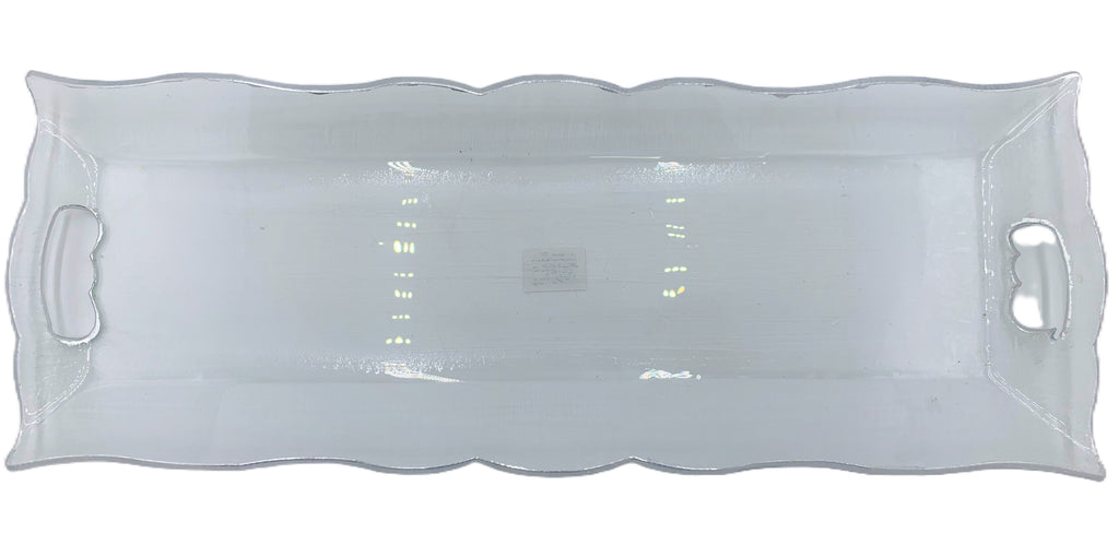 19"x7" GLASS PLATE W/SILVER RIM-RECTANGULAR