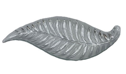 19"x8" GLASS LEAF SHAPE PLATE-SILVER