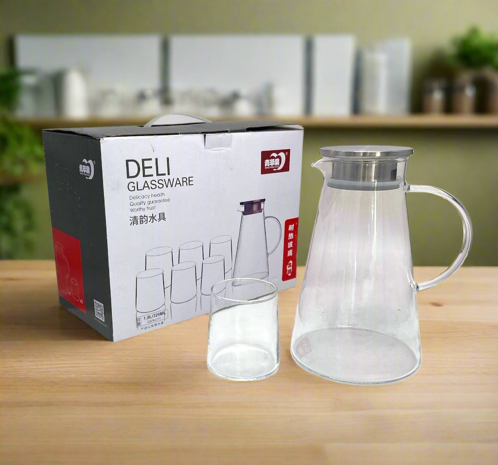 6 PC GLASS TUMBLER W/PITCHER