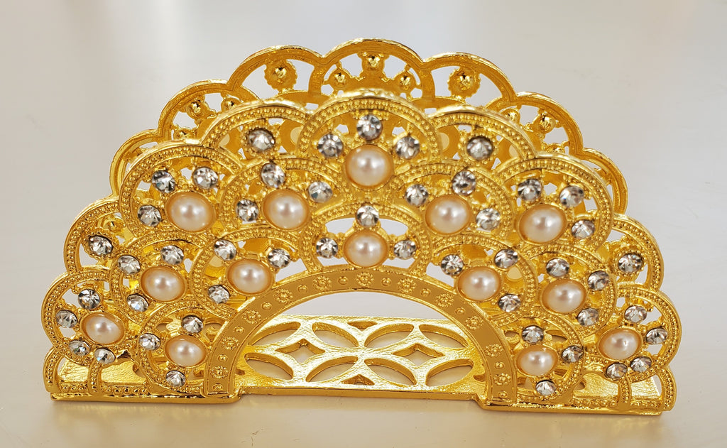 NAPKIN HOLDER W/PEARLS-GOLD